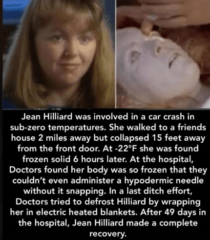 W 1980 roku świat usłyszał o Jean Hilliard, która została znaleziona całkowicie zamarznięta w minus 30 stopniach. Jej niesamowita historia to dowód na siłę ludzkiego organizmu i medyczny fenomen.