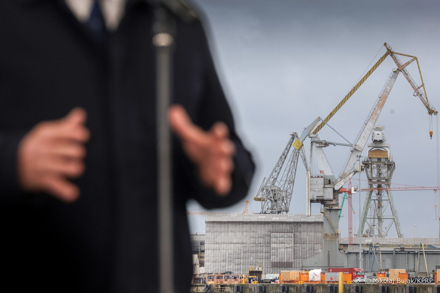 Prezydent Nawrocki zaznaczył, że inwestycje w porty to nie tylko kwestia gospodarki, ale też obrona narodowa – porty są miejscem, gdzie trafia sprzęt wojskowy oraz surowce energetyczne.