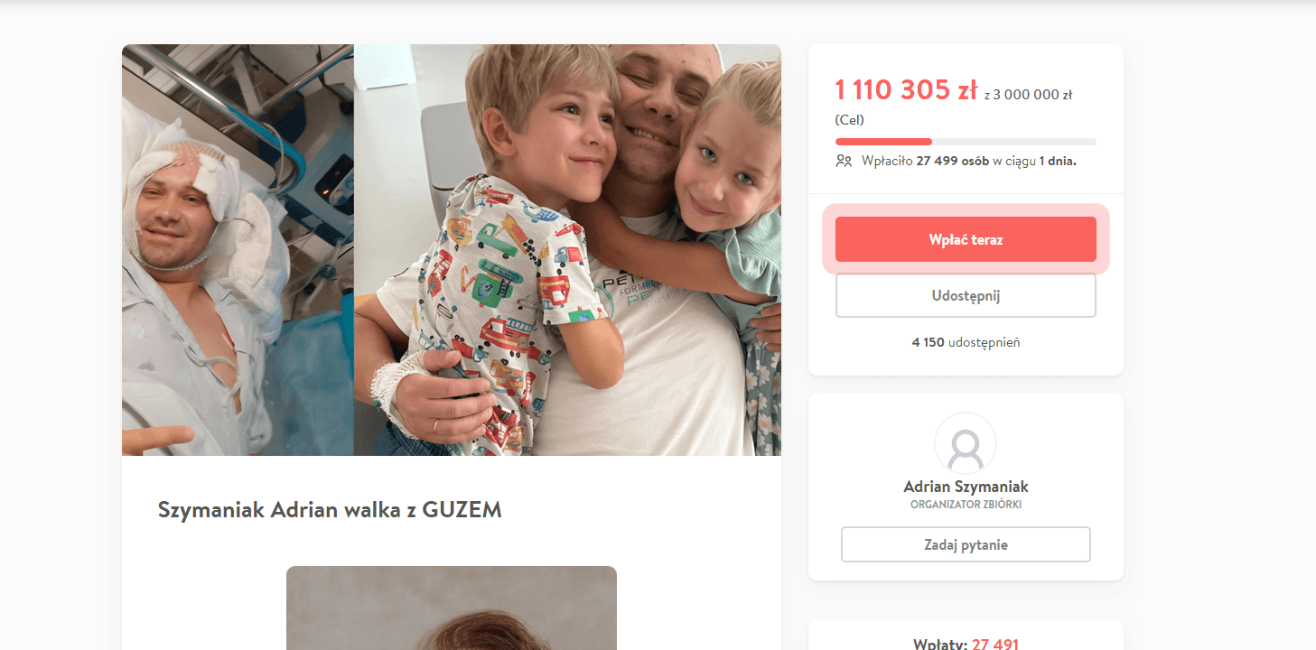 W momencie pisania tego artykułu udało się zebrać kwotę 1 mln 110 tysięcy złotych z potrzebnych 3 mln złotych.