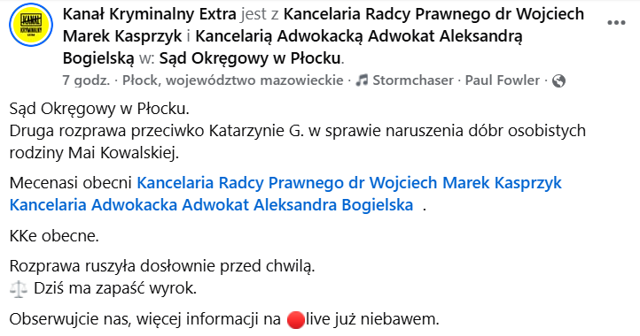 Z ustaleń pełnomocników rodziny wynika, że Katarzyna G. mogła opublikować nawet około 10 tysięcy obraźliwych wpisów – od insynuacji po wulgarne oskarżenia. Wpisy te miały charakter uporczywego nękania i zniesławiania, co stało się podstawą pozwu cywilnego o ochronę dóbr osobistych.