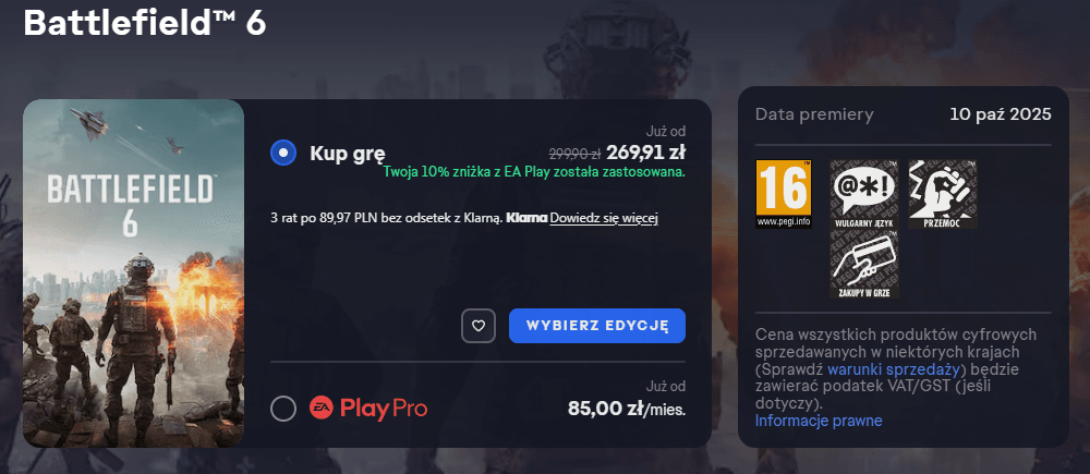 Edycja premierowa Battlefield 6 kosztuje 299,99 zł na PC, a na konsolach nawet 339 zł – to spory wydatek dla wielu graczy. Jednak są sposoby, żeby zagrać znacznie taniej.