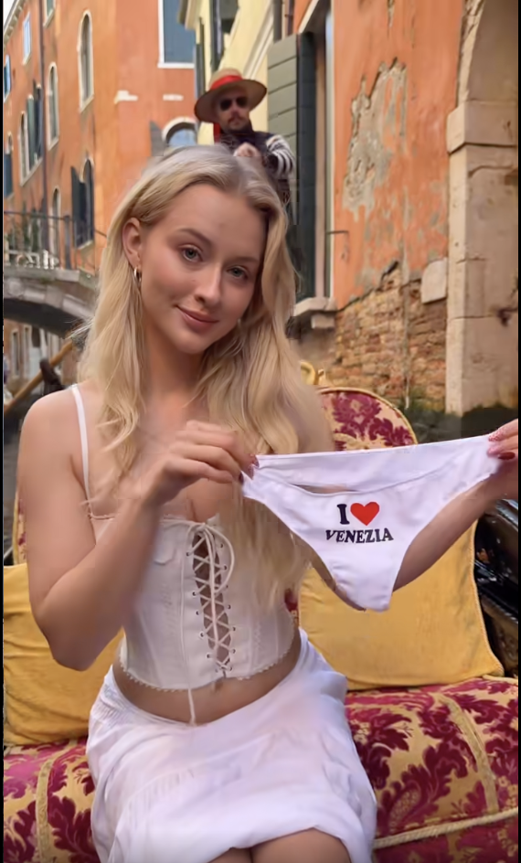 Wszystko zaczęło się od relaksującej przejażdżki gondolą po malowniczych kanałach Wenecji. Lena Polanski pojawiła się na nagraniach w skąpym stroju: majtkach z zabawnym napisem „I love Venice”, podkreślającym jej sympatię do włoskiego miasta.