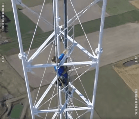 Kevin Schmidt z firmy Sioux Falls Tower and Communications to jeden z nielicznych specjalistów w Stanach Zjednoczonych, którzy regularnie wspinają się na konstrukcje sięgające niemal pół kilometra w górę. Jego zadaniem jest konserwacja i wymiana świateł ostrzegawczych na wieżach – to właśnie one sygnalizują obecność przeszkody samolotom lecącym nocą nad Dakotą Południową.