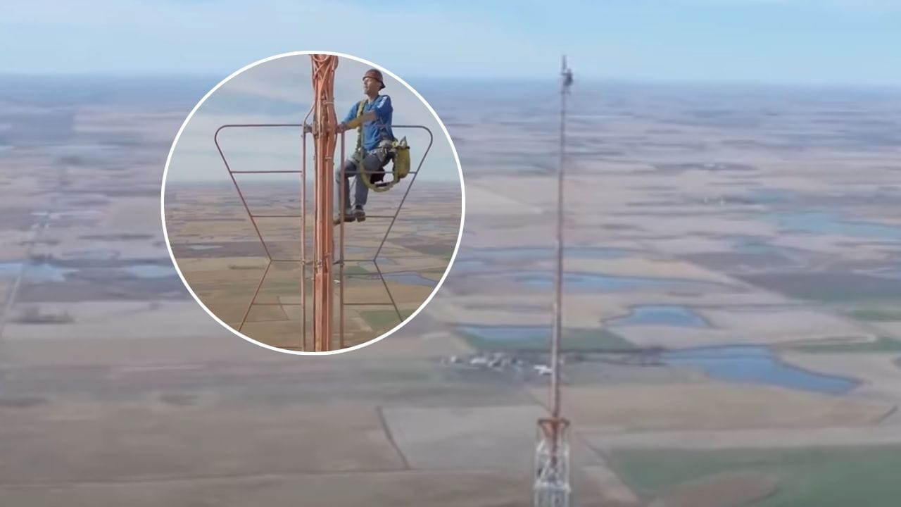Kevin Schmidt z firmy Sioux Falls Tower and Communications to jeden z nielicznych specjalistów w Stanach Zjednoczonych, którzy regularnie wspinają się na konstrukcje sięgające niemal pół kilometra w górę. Jego zadaniem jest konserwacja i wymiana świateł ostrzegawczych na wieżach – to właśnie one sygnalizują obecność przeszkody samolotom lecącym nocą nad Dakotą Południową.